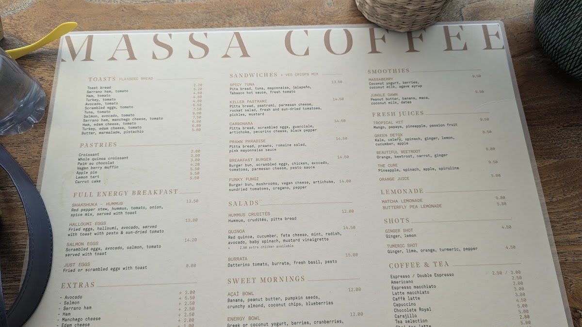 Customer reviews rave about the quality and taste of the food, highlighting the juices and friendly service as standout features. Enjoy your meal in the lovely outdoor seating area away from the hustle of the port, or opt for takeaway if you're on the go. At Massa Coffee, you're guaranteed a nourishing meal in a welcoming setting, making it a true gem on the Ibiza culinary scene.